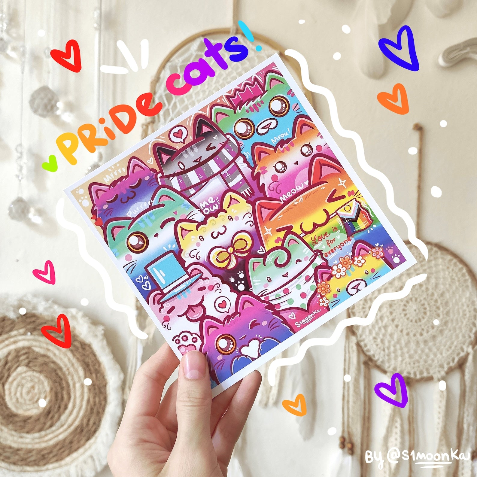 I made for you this lovely print with a BUNCH OF PRIDE CATS to celebrate all the different kinds of love (o^^o)