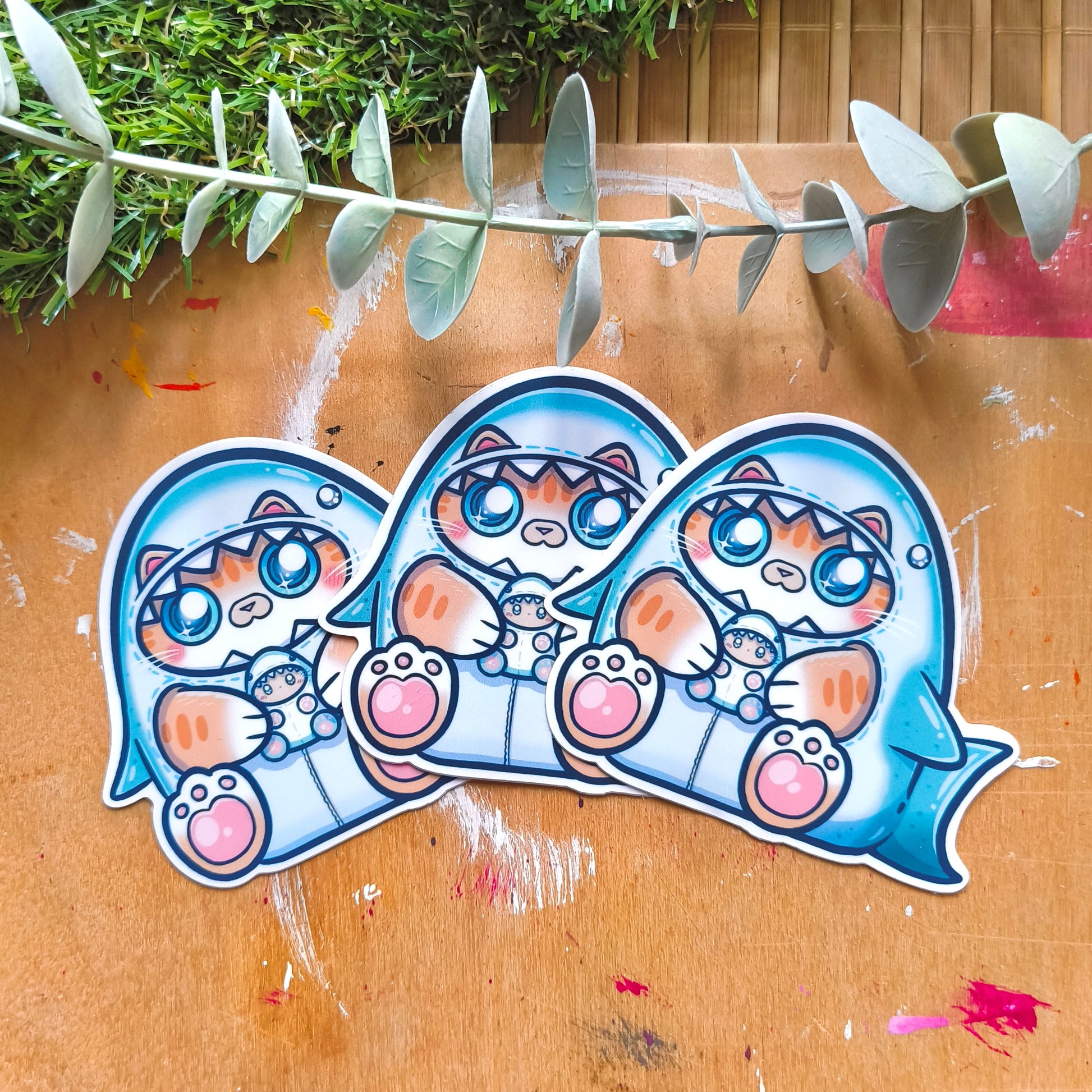 I made for you this cute sticker with a cute kitty in a shark costume! (o^.^o)