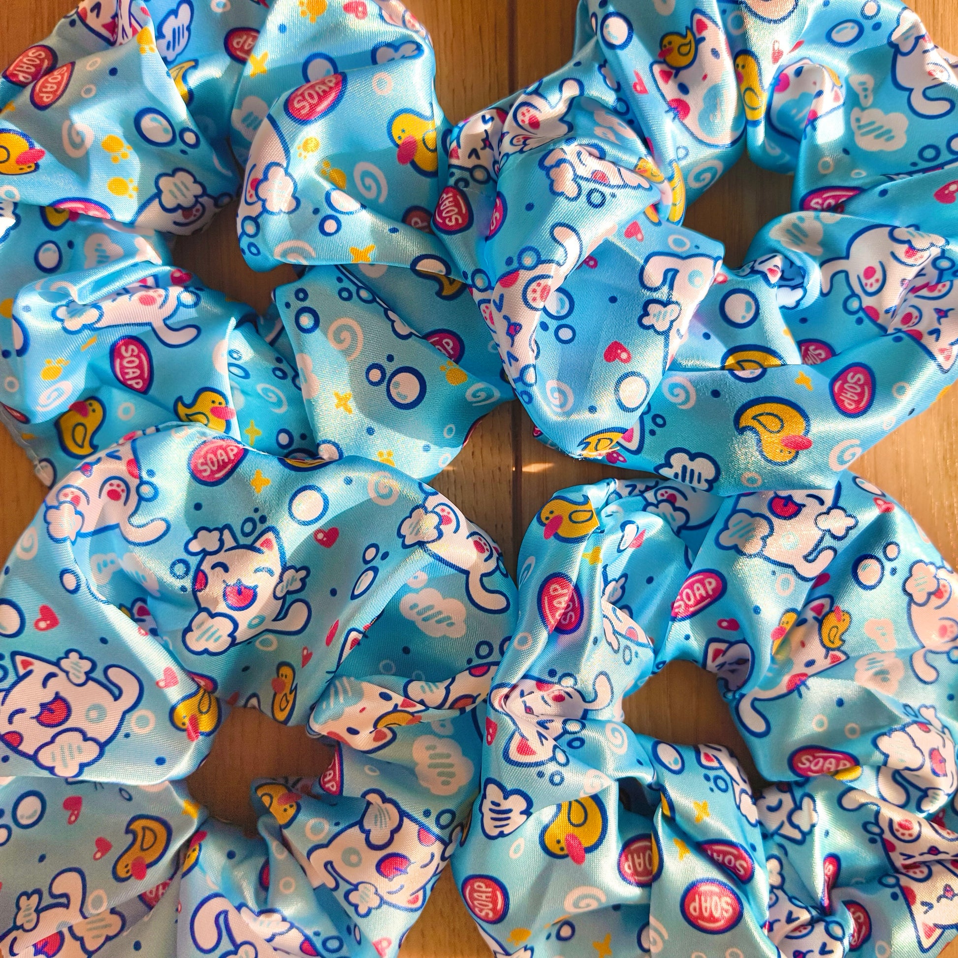 ~Flexible cute big scrunchie sewn from glossy silk and rubber band inside